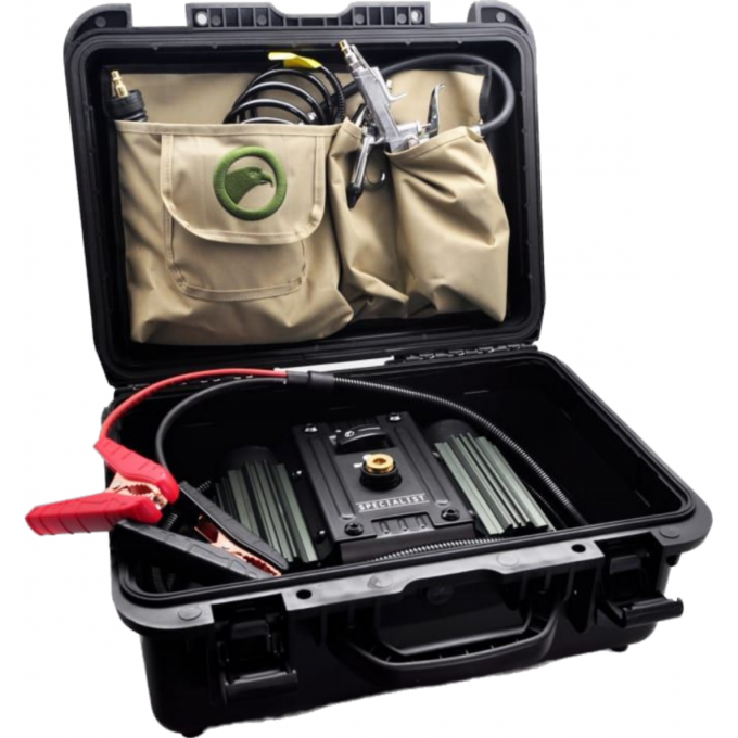 Модель BERKUT SPEC-500C — это портативная пневмосистема, включающая два высокопроизводительных компрессора, работающих в одной связке и интегрированных в ударопрочный кейс. Рабочее напряжение компрессора: 12В (бортовая сеть автомобиля). Система может быть использована для накачивания шин автомобилей, надувных лодок, рафтов, сапбордов и т.п. Устройство комплектуется гибким армированным шлангом 7,5 м, а также профессиональным пистолетом для накачки шин с манометром.